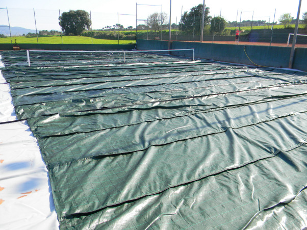 Inicio / Productos / Accesorios Pistas de Tenis / Lonas / Lona térmica Lona térmica Lona diseñada especialmente para cubrir pistas de tenis y protegerlas de las heladas (-7Cº). También las protege de las lluvias. Si desea más información pinche aquí Contacta Categoría: Lonas Productos relacionados Airroller Lona para lluvia Lona Celabasa ICover